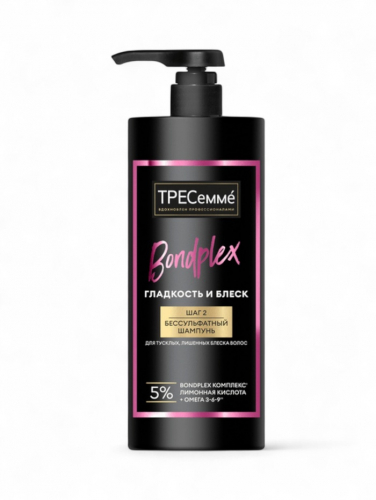 Бессульфатный шампунь ТРЕСеммé Bondplex Гладкость и блеск — эффективное средство для ухода за тусклыми и лишенными блеска волосами. Формула на основе Bondplex-комплекса с лимонной кислотой и омега 3-6-9 восстанавливает структуру локонов, укрепляет их и обеспечивает эффект ламинирования. Волосы становятся гладкими и приобретают стойкий блеск на 72 часа.