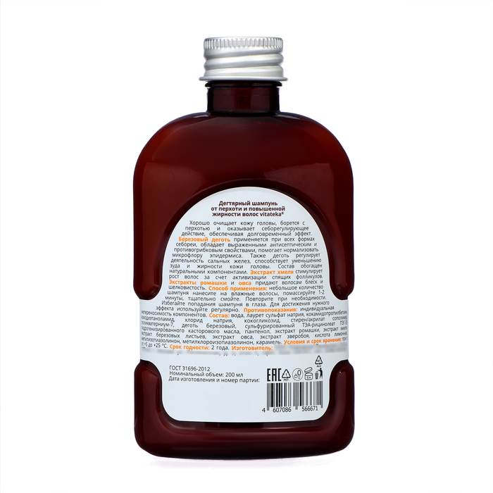 Шампунь дегтярный «Витатека» от перхоти и повышенной жирности волос, 200 мл