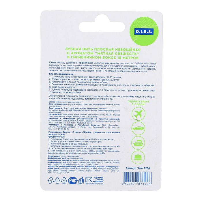 Зубная нить D.I.E.S, 15 м, Мята, 1 шт.