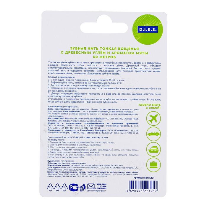 Зубная нить D.I.E.S., мята с углём, 50 м