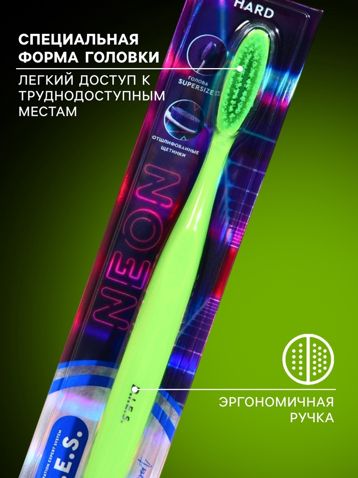 Зубная щетка высокой жесткости быстро удаляет зубной налет и деликатно отбеливает эмаль. Специальная форма головки облегчает доступ к дальним жевательным зубам.Зубная щетка D.I.E.S. NEON – отличный выбор для комплексного ухода за полостью рта.