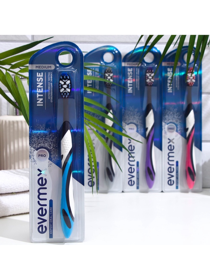 Зубная щётка Evermex Intense, средней жёсткости, микс, 1 шт.
