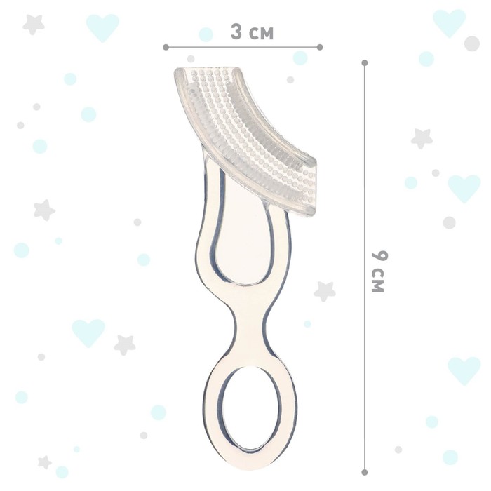 Щётка выполнена из эластичного материала, мягкие ворсинки обеспечивают очистку молочных зубов и бережный массаж дёсен. Кроме того, изделие позволяет удобно наносить обезболивающее средство.