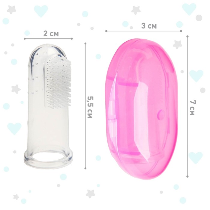 Прорезыватель - массажер Крошка Я 3 в 1, детский в контейнере, на палец, силиконовый от 3 мес., розовый