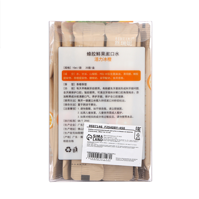 Набор ополаскивателей для рта в стиках со вкусом апельсина, 20 шт. по 10 мл