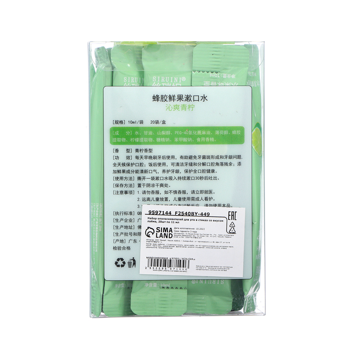 Набор ополаскивателей для рта в стиках со вкусом лайма, 20 шт. по 10 мл