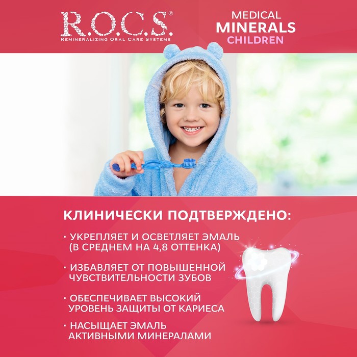 Гель для укрепления зубов R.O.C.S. Medical Minerals, для детей и подростков, со вкусом клубники, 45 г