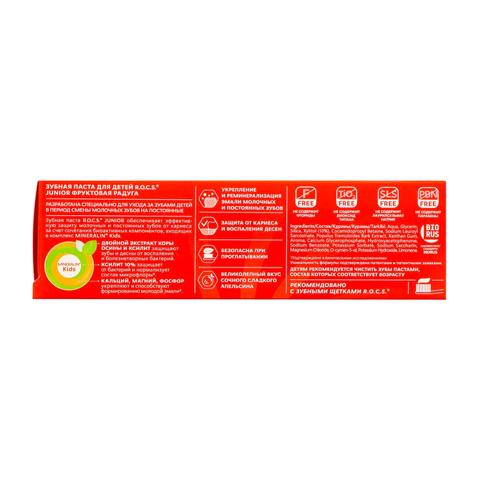 Зубная паста R.O.C.S. Junior, «Фруктовая радуга», 6-12 лет, 74 г