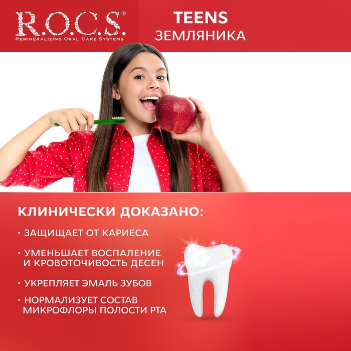Зубная паста R.O.C.S. Teens, аромат знойного лета, земляника, 74 г