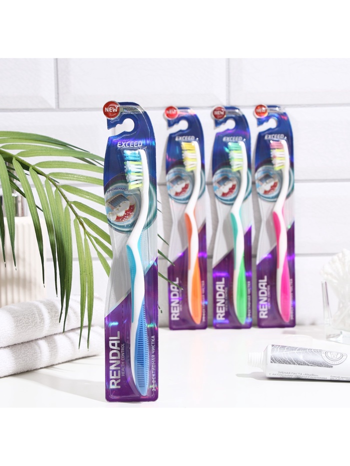 Зубная щётка Rendall Exceed, средней жёсткости, микс, 1 шт.
