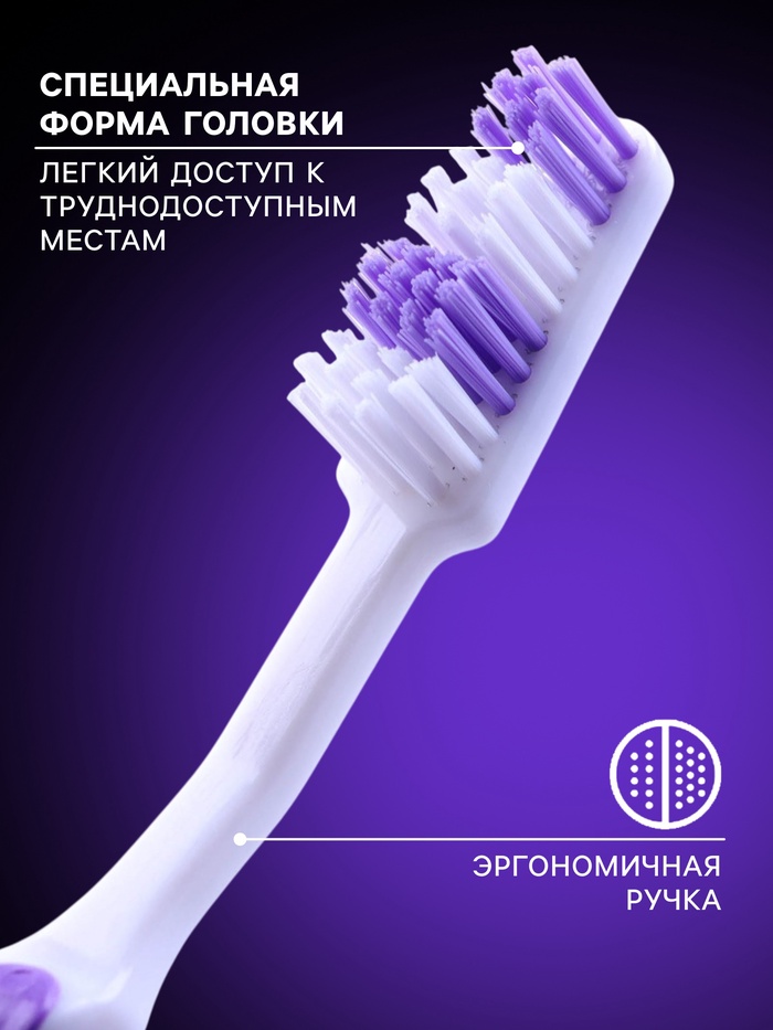 Ручка щётки эргономична и удобна в использовании, что позволяет достичь максимального комфорта во время чистки зубов. Её форма обеспечивает надёжное удержание щётки в руке, предотвращая скольжение и обеспечивая точность движений.