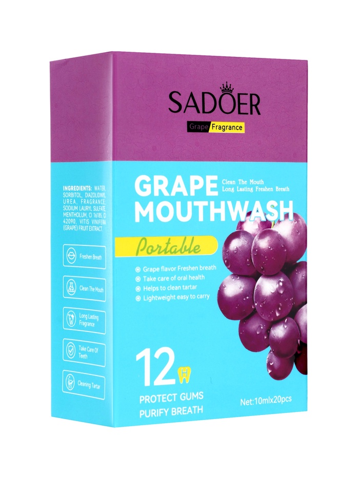 Набор ополаскивателей для рта в индивидуальных стиках со вкусом винограда — это удобное и практичное решение для поддержания свежести дыхания в течение дня. Формат одноразовых порций идеально подходит для активного образа жизни и позволяет легко заботиться о гигиене полости рта в любой ситуации.
