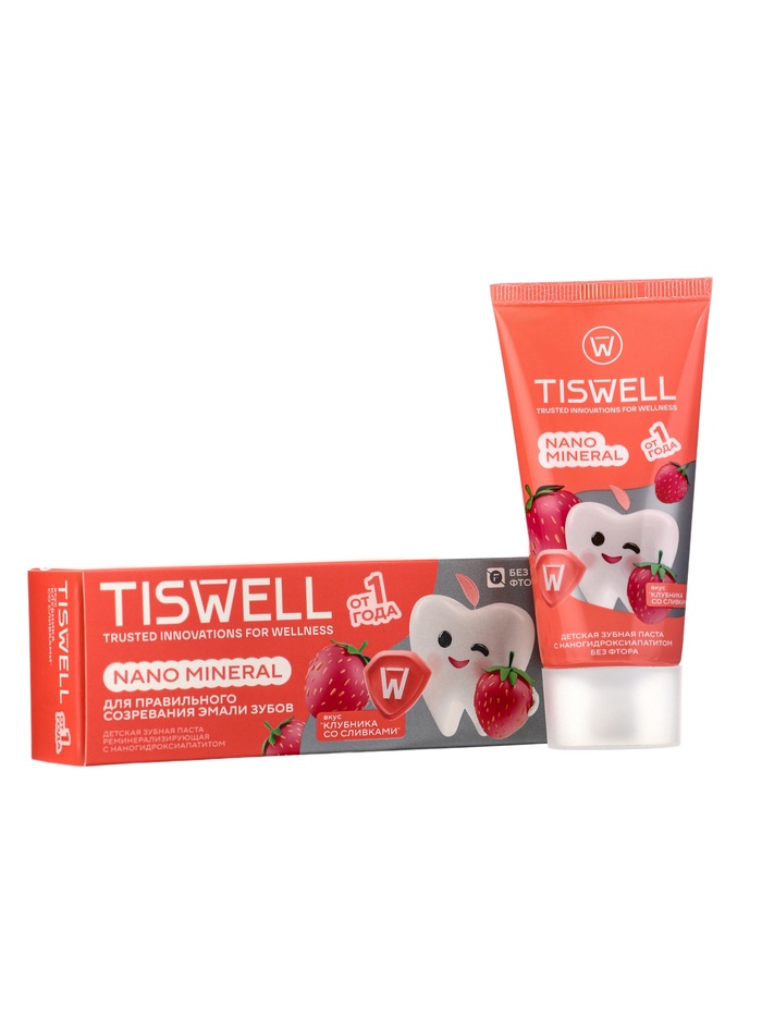 Зубная паста детская реминерализирующая с наногидроксиапатитом «Клубника», 60 г — мягкая и безопасная паста для детей от 1 года. Обогащена наногидроксиапатитом, который укрепляет зубную эмаль и защищает от кариеса, мягко очищает зубы. Приятный клубничный вкус делает чистку зубов лёгкой и увлекательной для малышей.