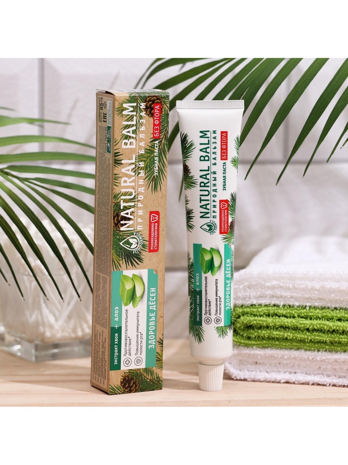 Зубная паста "Природный бальзам" с алоэ и заботой о здоровье десен представляет собой продукт, разработанный для обеспечения эффективной гигиены полости рта и поддержания здоровья десен. Она содержит алоэ вера, которая известна своими потенциальными преимуществами для десен и укрепления зубной эмали.