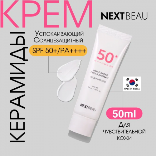 Успокаивающий солнцезащитный крем с керамидами для чувствительной кожи SPF 50+/PA++++, 55мл, NEXTBEAU