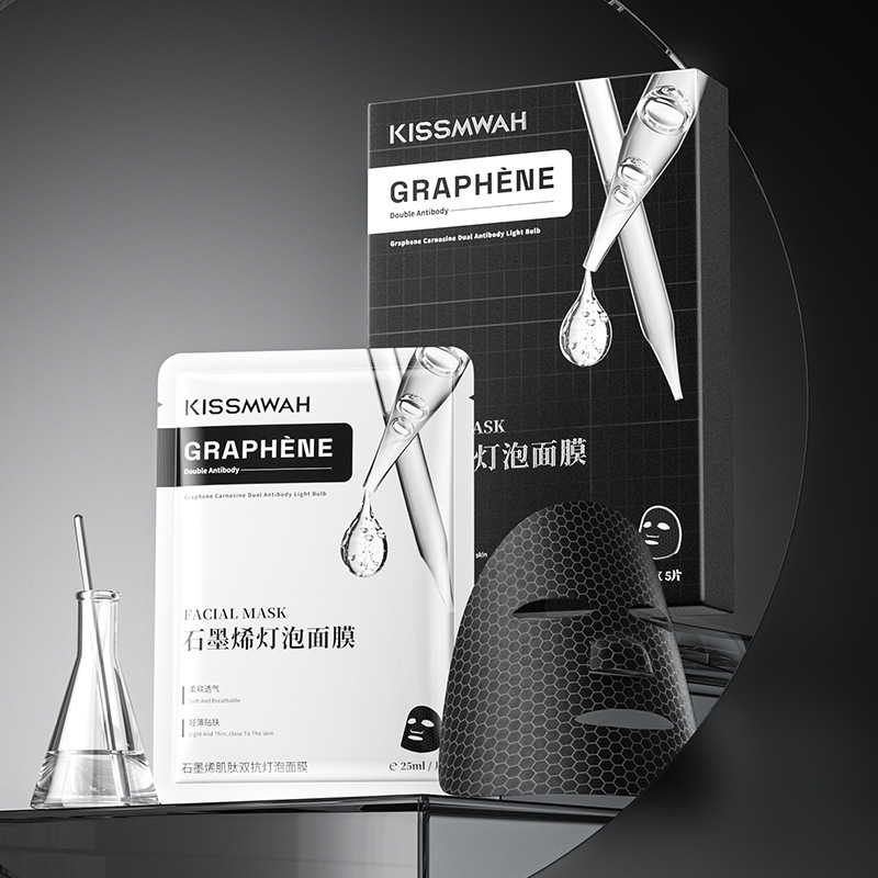 Увлажняющая антивозрастная тканевая маска с графеном и карнозином KISSMWAH Graphene Carnosine Double Anti-Aging Light Bulb Mask, 25 мл