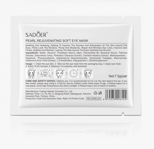 Способ применения:  Перед использованием патчей удалите макияж с глаз. Аккуратно вскройте упаковку чистыми руками, достаньте патчи и поместите под глаза. Обратите внимание, что более широкая часть патча должна находиться со стороны внешнего уголка глаза. Оставьте маску на 15-20 минут, удалите патчи, дайте остаткам средства впитаться или распределите их по коже легкими «вбивающими» движениями.