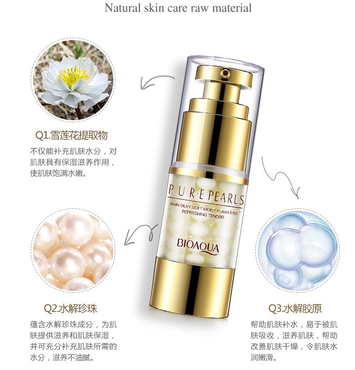 Крем для глаз Bioaqua Pure Pearls Eye Cream — увлажняющий крем, эффективно устраняющий морщины, темные круги, отечность (мешки), а также питающий и омолаживающий кожу. Такой эффект достигается благодаря экстракту лотоса, гидролизованного жемчуга и гидролизованного коллагена.