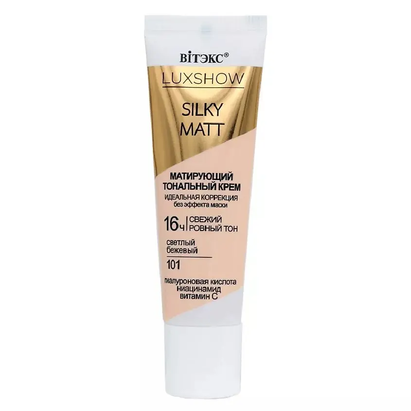 Роскошный матирующий тональный крем, который моментально делает кожу визуально совершенной.Поистине волшебная формула крема может все: идеально маскирует неровный тон, пигментацию, веснушки и другие несовершенства, матирует кожу, обеспечивает стойкость и свежесть тона до 16 часов. Крем настолько нежный и невесомый, что что вы забудете о том, что нанесли его на кожу.Роскошное бархатисто-матовое покрытиеСвежий ровный тон до 16 часовПревосходная стойкость даже на жирной кожеИдеально наслаивается для максимальной степени маскировки несовершенствБез эффекта маски на лицеПолноценный уход за кожей благодаря ниацинамиду, гиалуроновой кислоте и витамину СВ состав тонального крема входят специальные компоненты для интенсивного увлажняющего и антивозрастного ухода за кожей в течение всего дня.Низкомолекулярная гиалуроновая кислота глубоко проникает в кожу, поддерживает необходимый уровень увлажненности, помогает разгладить морщинки, вызванные обезвоживанием.Ниацинамид нормализует выработку себума, сужает поры, выравнивает тон, уменьшает пигментацию и следы постакне.Витамин С в стабилизированной форме осветляет кожу, улучшает выработку коллагена, оказывает выраженное антиоксидантное действие, обеспечивает защиту от преждевременного старения.Витамин Е улучшает упругость и плотность кожи, помогает разгладить морщинки.Сразу после нанесения тонального крема кожа выглядит бархатисто-матовой, идеально ровной, гладкой и свежей, а несовершенства становятся абсолютно незаметными.