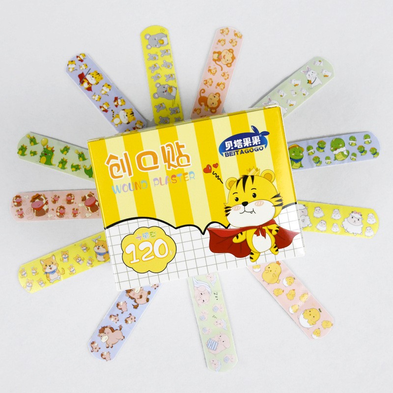 Пластыри с рисунками станут настоящ..показатьей находкой для детей!В упаковке 120 штук, каждый из которых украшен ярким и красочным рисунком. Всего в коллекции 12 различных изображений, так что ваш ребенок будет радоваться каждому новому пластырю!Эти пластыри не только прекрасно справляются с защитой маленьких порезов и царапин, но и создают приятную атмосферу и повышают настроение ребенка, в отличие от обычных скучных и однообразных пластырей.Ультратонкие лейкопластыри на полиуретановой водонепроницаемой основе надежно защищает рану во время купания. Размер пластыря 72*19 мм.Пластырь хорошо приклеивается к коже, удаляется, не причиняя боли и не оставляя следов клея.Каждый пластырь изготовлен из мягкого и гипоаллергенного материала, который не вызывает раздражения даже на самой чувствительной коже.