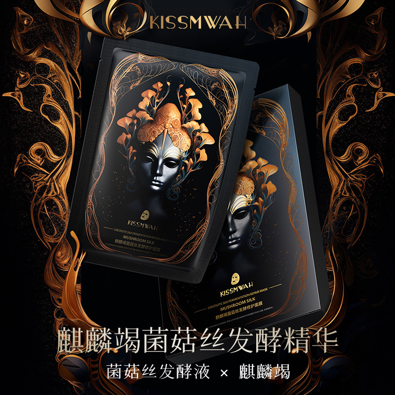 Восстанавливающая тканевая маска для лица с ферментами шелка и грибов KISSMWAH Creosote Silk Fermentation Repair Mask Mushroom Silk, коробка 25 мл × 5 шт.