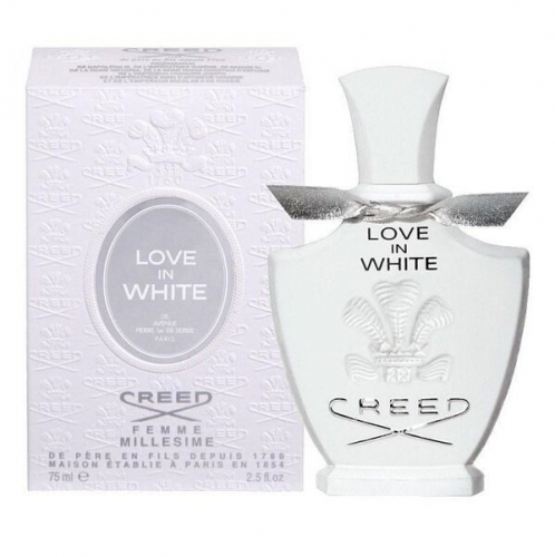 Creed Love In White первый аромат, который был выпущен после пятилетнего перерыва после Fleurs, выпущенных в 2000 году. Дебют состоялся с США, затем духи отправились по миру. На новый аромат Оливье Крида вдохновило морское путешествие, даже флакончик разрабатывался в соответствии с морскими мотивами. По словам Крида, он похож на женскую фигуру, лежащую на белых песках возле ласкового огромного океана. Серебряная ленточка на горлышке символизирует солнечные лучи, танцующие на воде. Часть доходов от продажи Creed Love In White в Америке направляется в дар ООН, на решение мировых проблем. Первый флакон с новым ароматом подарили актрисе и послу доброй воли ООН по делам беженцев Анджелине Джоли.