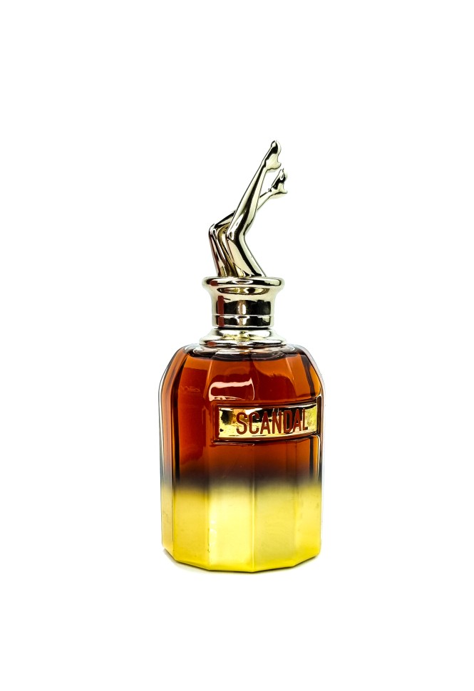 Тяжёлый граненый стеклянный флакон Jean Paul Gaultier Scandal Absolu, являющийся воплощением роскоши и изысканной экстравагантности, увенчан дерзким колпачком в виде позолоченных женских ножек, символизирующих непреодолимый соблазн.