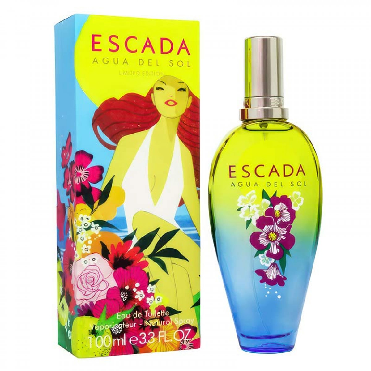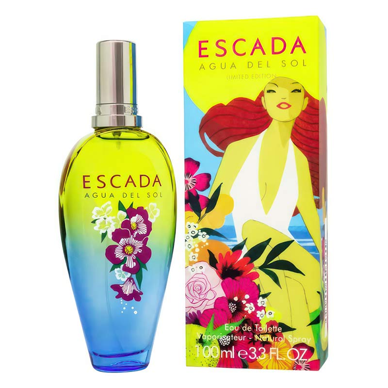 Escada Água del Sol - Олицетворяет жизнерадостность и оптимизм, переносит Вас на экзотический остров, окруженный прозрачным морем и пышной тропической растительностью. Композиция сочетает в себе яркую цитрусовую свежесть, нежные цветочные аккорды и солнечные древесные оттенки. В начале свежий лимон с нотами сочного апельсина и насыщенным тропическим гуавой. Сердце аромата прекрасно сочетаются нежные оттенки пышных цветов: экзотическое пассифлора, чувственный жасмин и пряный имбирь. База аромата ощущаются древесными нотами сандалового дерева и сладковатый амбра.