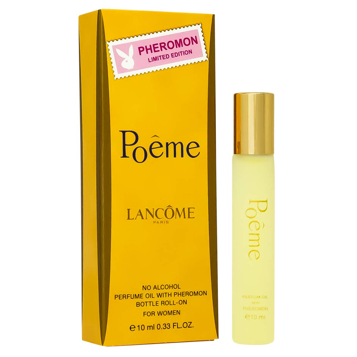 Популярный цветочный аромат от Lancome создан неповторимым сочетанием восточных благовоний и пряностей, оттенками распустившихся полевых цветов, сочных цитрусовых фруктов и старинной древесины. Он будет будоражить Ваше воображение, манить и гипнотизировать окружающих. Наш интернет-магазин предлагает заказать доставку Lancome Poeme, 10 ml. У нас Вы также можете купить духи оптом по низким ценам. Ноты: черная смородина, гималайский мак, слива, зеленые ноты, мандарин, нарцисс, персик, бергамот, дурман, мимоза, кожа, флердоранж, фрезия, жасмин, гелиотроп, иланг, цветок ванили, тубероза, роза, амбра, мускус, бобы Тонка, ваниль, апельсиновый цвет, кедр.