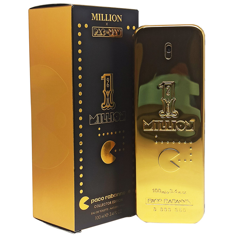 Paco Rabanne 1 Million Pac-Man, чувственном звучании аромата доминируют грейпфрут с мятой и мандарином. В сердцевине раскрываются оттенки пряных и теплых нот специй и корицы и яркой розы.В шлейфе идет мощное звучание сильного пачули и амбры, кожи с древесными оттенками.