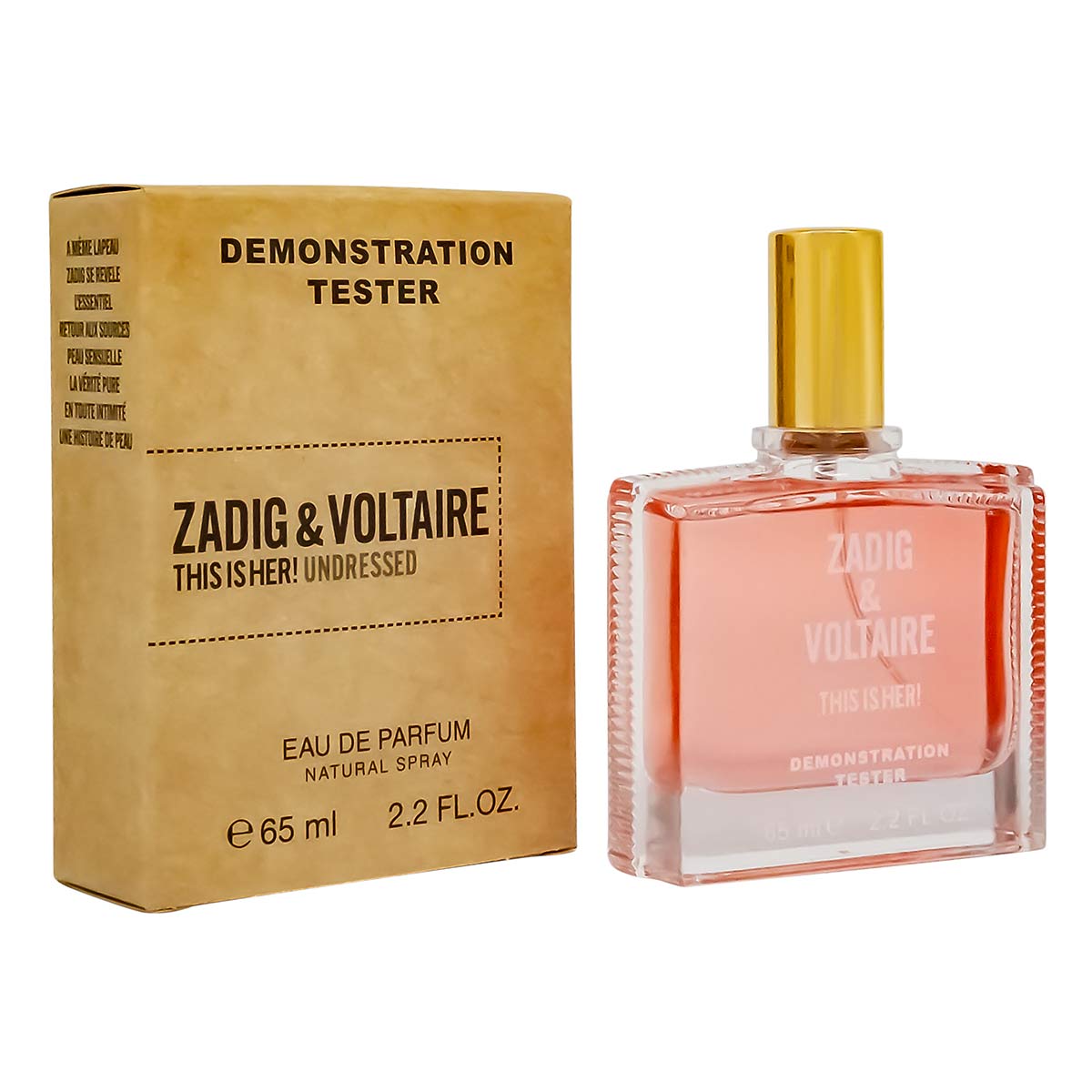 Женский парфюм-тестер Zadig & Voltaire This Is Her! Undressed — это соблазнительная и чувственная композиция, которая раскрывает внутреннюю силу и уверенность каждой женщины. С первых аккордов аромат очаровывает утонченными цветочными нотами и легким прикосновением имбиря. Цветочные ноты подчеркивают нежность и женственность, а имбирь добавляет пикантную пряность, создавая интригующее сочетание и задавая настроение для увлекательного путешествия. Сердце аромата завораживает насыщенной ноткой кожи и экзотическим иланг-илангом. Кожа привносит в композицию чувственность и загадочность, в то время как иланг-иланг добавляет тропическую сладость и интенсивность, создавая чарующий флер, который словно обнимает вас. Базовые ноты сандала и мускуса завершают это великолепное произведение, придавая аромату глубину и стойкость. Сандал обладает теплым, древесным характером, даря ощущение уюта, тогда как мускус добавляет элегантности и завершает этот шлейф своим пленительным ощущением. Zadig & Voltaire This Is Her! Undressed — это идеальный выбор для смелых и харизматичных женщин, стремящихся выразить свою индивидуальность. Этот парфюм станет вашим верным спутником в каждом важном моменте жизни, даря уверенность и обаяние, а его шлейф оставит незабываемое впечатление в сердцах окружающих вас людей. Позвольте этому аромату обнажить вашу истинную сущность!
