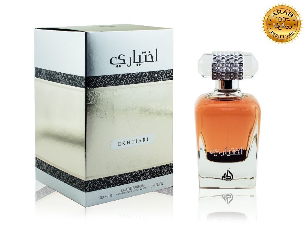 Ekhtiari — яркий, загадочный и самобытный женский древесно-цитрусовый аромат, выпущенный в 2018 году арабским парфюмерным брендом Lattafa. Красивый и органичный парфюм легко и непринужденно впишется в любой женский образ, придав ему особое изящество и утонченность. Оригинальный флакон с фактурной серебристой крышечкой и черными шариками на донышке идеально отражает необычность заключенного в нем парфюма и станет украшением любого туалетного столика.