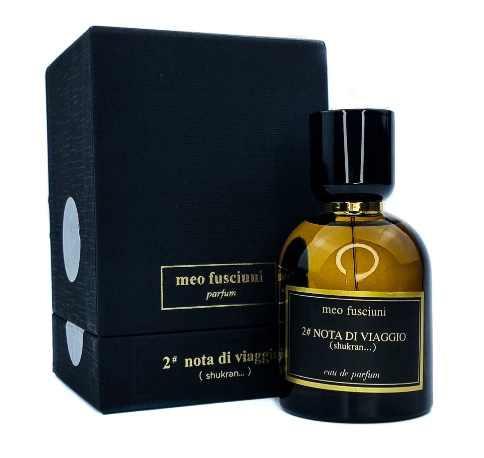 Натуралистичная композиция 2# nota di viaggio (shukran) от Meo Fusciuni адресована и зрелым людям с устоявшимся вкусом, и молодежи с неординарным характером. Это ароматический проект итальянского бренда, созданный на базе ольфакторных воспоминаний. Парфюмерная вода вышла в 2011 году, в составе трилогии Meo Fusciuni. Этот эликсир призывает остановиться и вспомнить важные моменты в жизни.