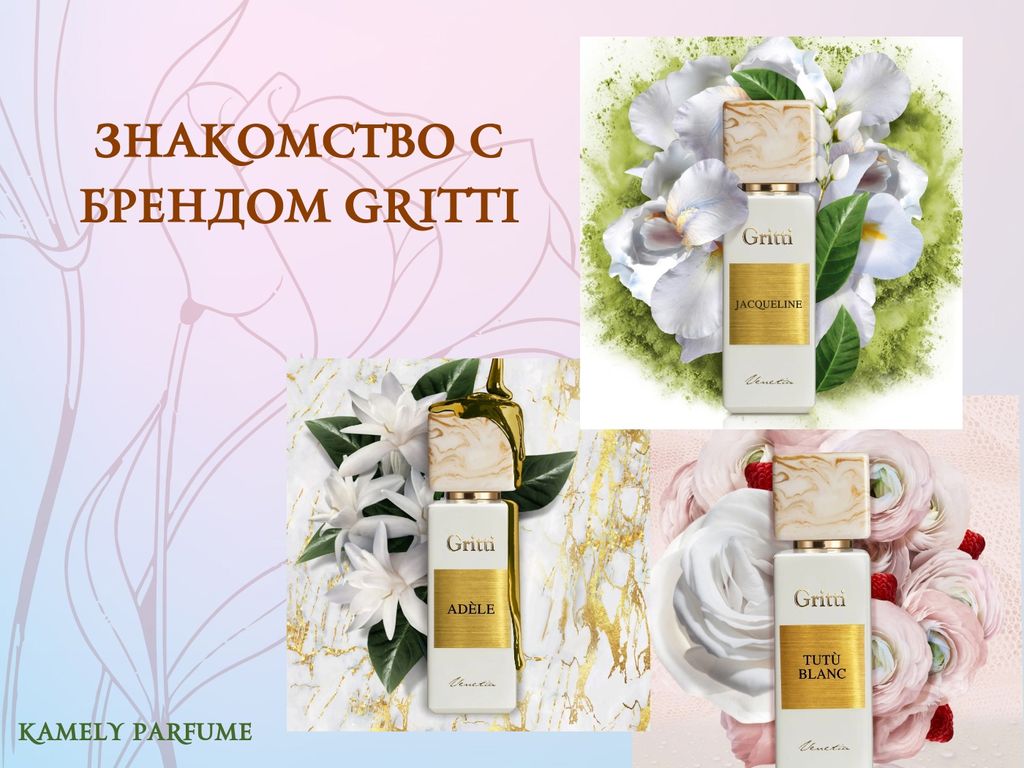 Каждый аромат бренда — это попытка обобщить эмоции и воспоминания о различных странах и моментах Великого Путешествия Альвизе Гритти, созданная самыми уважаемыми «носами» из традиционных итальянских ингредиентов. Основная цель парфюмерной компании Dr. Gritti заключается в воссоздании старинных формул чудодейственных ароматов, которые пользовались почетом у аристократов эпохи Возрождения.