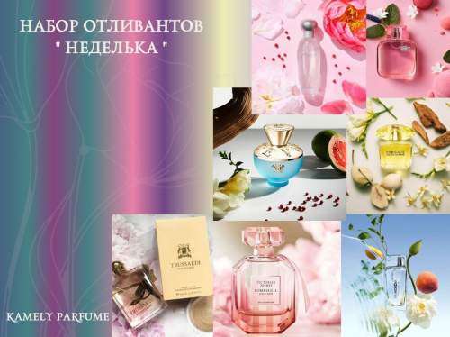 Набор состоит из 3 ароматов в атомайзерах с распылителем, объёмом по 2 мл каждый.