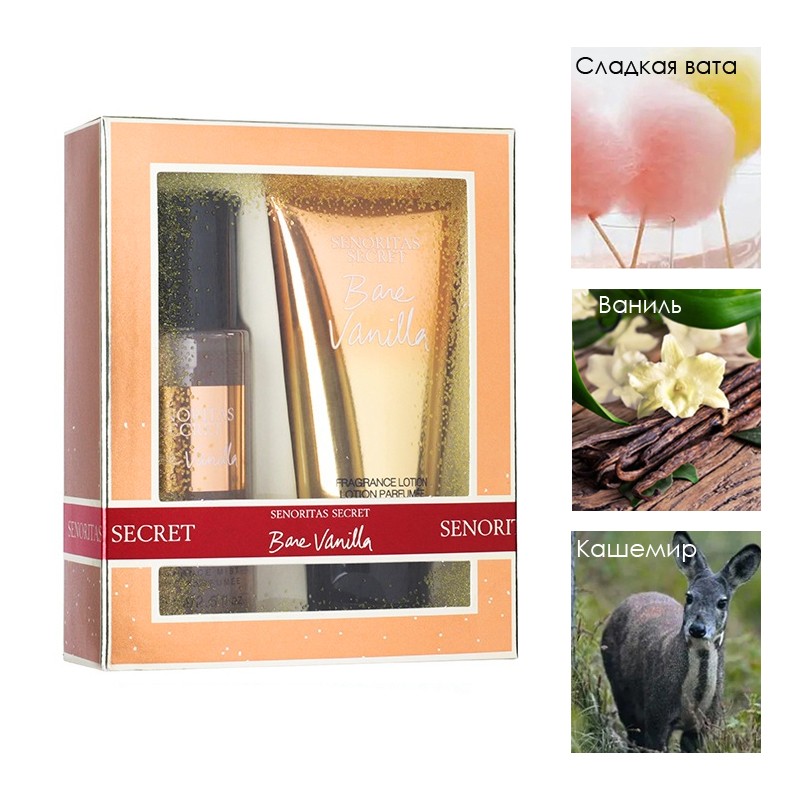 Набор парфюмированный спрей + лосьон для тела BARE VANILLA Senoritas Secret, 2 шт. * 75 мл.
