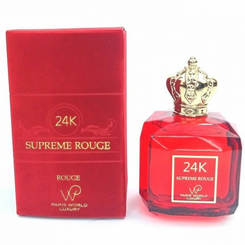 Paris World Luxury 24K Supreme Rouge — парфюмерная вода класса люкс с восточным сладким ароматом для женщин, выпущенная в 2016 году французским парфюмерным брендом Paris World Luxury. Роскошный восточный чувственный аромат поражает интригующим сочетанием теплых смолистых нот и завораживающе прекрасных цветочных оттенков, что придает всему звучанию парфюма особенную прелесть и оригинальность.