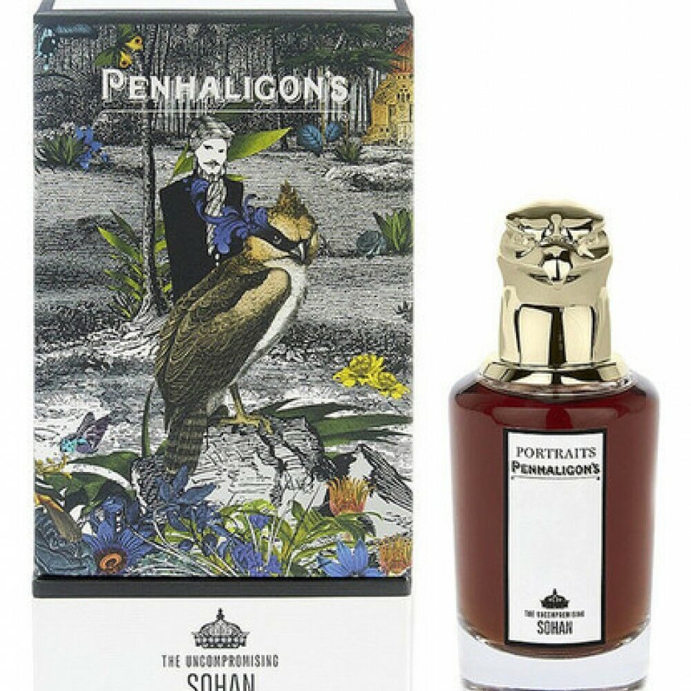 The Uncompromising Sohan ( безкомпромисный Сохан).В мире вымышленных персонажей Penhaligon's Соган занял нишу молодого и успешного предпринимателя.Честолюбивый и проницательный, Соган работал усердно и с талантом, чтобы утвердиться в мире больших дел. Он превращал деловые контакты в дружеские, и теперь у него есть ключ, открывающий любые двери.Не он ли тот самый мужчина, который попадется в сети, расставленные очаровательной Ясмин?Тотемное животное- Орёл.Композиция стартует яркими, неожиданными аккодами розовых бутонов и пряного шафрана. В сердце аромата раскрываются оттенки ветивера и лабданума. Шлейф композиции состоит из акцентов лаосского уда и сандалового дерева.Верхние ноты: бутон розы, шафранНоты сердца: ветивер, лабданумНоты базы: лаосский уд, сандаловое дерево.