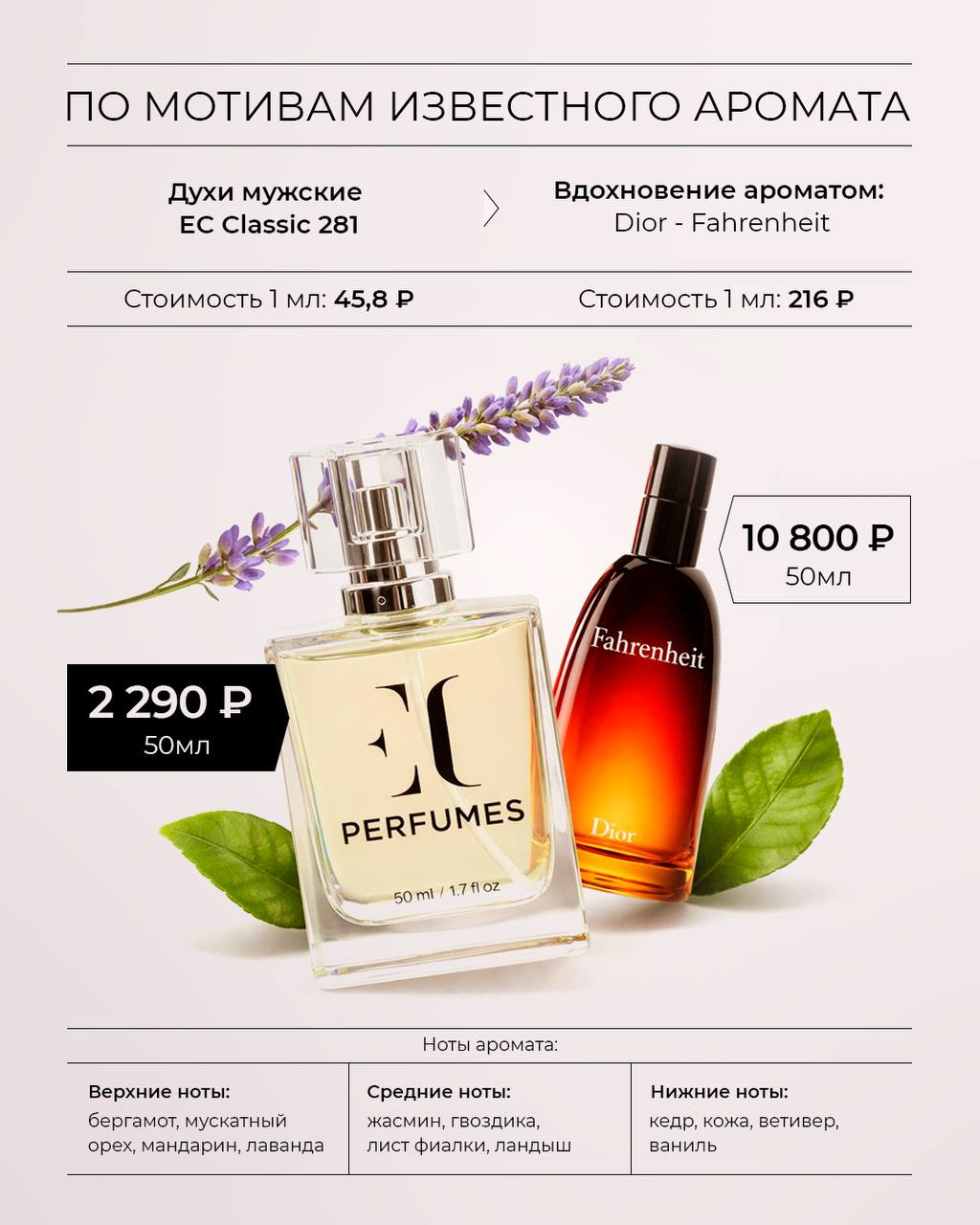 НОВИНКА Духи мужские EC Classic 281, 50 мл ВЕРСИОННЫЙ ЭКВИВАЛЕНТ DIOR - FAHRENHEIT /Дио́р — Фэ́рэнхейт/