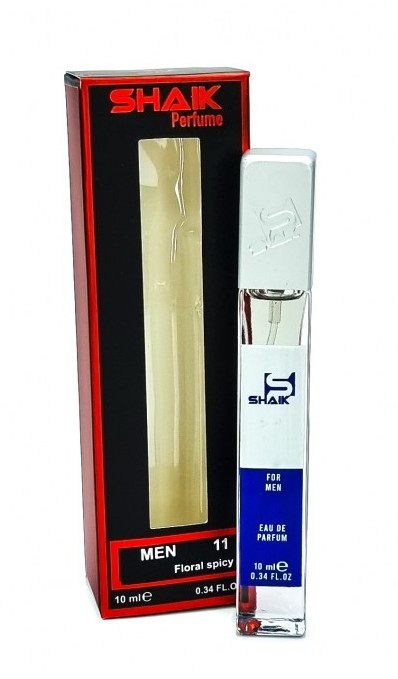 Звучание Shaik № 11 начинается с игристой цитрусовой свежести сладкого солнечного апельсина, с вкрапленными в нее энергичными нотками пряного черного перца. Сердце композиции дарит тонкий пряно-специевый аромат лавра и запах дорогого виски. Финальный аккорд отзывается чуть смолистыми акцентами амбры и горьковато-солеными полутонами морской соли, создавая ощущение солоноватого морского бриза.