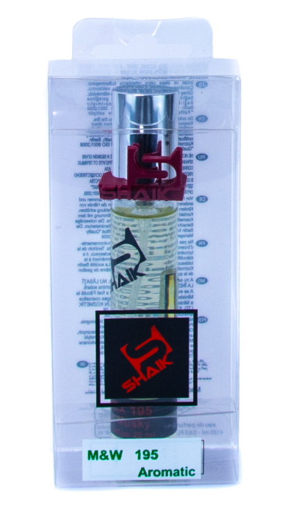 Shaik MW195 - уникальный в водяно-фужерный аромат. Это композиция символизирует собой английское побережье. Источником вдохновения стала ветреная, дождливая, переменчивая погода, которая нарисована темными красками на фоне могучих скал и огромных волн. Оригинальности сюжету передает шалфей, растущий на берегах. Уникальный аромат Shaik MW195 отличается естественностью и свежестью, он воссоздает удивительную легкость и деликатность, столь необходимую в теплое время года. Нежные пряные аккорды лишь придают аромату пикантность. Запахи дикого побережья воплотились в этом удивительном формате. Именно на английском побережье можно почувствовать не только горьковатый запах соли и аромат морских водорослей, но и удивительную мягкость мускатного шалфея, сочного грейпфрута, согревающей амбры. При этом рождается диковинно многогранный и сложный букет, способный будоражить чувства и эмоции.
