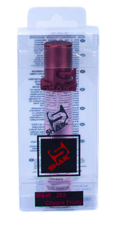 Сладкий, экзотический и влекущий фруктово-шипровый унисекс аромат. В ароматической композиции Shaik MW203 ароматные, экзотические, фруктовые переливы маракуйи, персика, малины и груши великолепно сочетаются с легкой терпкостью листьев смородины и оттенком прогретого солнцем морского песка. Сердце парфюма состоит из ярких, самобытных акцентов таинственного ландыша. Магический, искушающий аромат гелиотропа является основополагающей нотой шлейфа парфюма. Его томная сладость, разбавленная свежестью древесных нот, постепенно приобретает вкусный ванильно-мускусный оттенок.