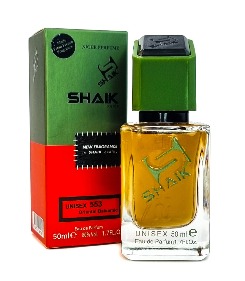 Shaik MW553 — ванильно-пряный унисекс-аромат с доминирующими нотами кожи и табака. Композиция предлагает многогранную ваниль в сочетании с острыми нотами амбры и древесными нюансами. Новая смесь состоит из более глубоких и темных парфюмерных оттенков, которые захватывают чувства.