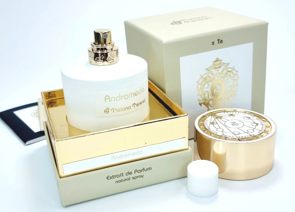 Tiziana Terenzi Andromeda начинает звучание с нежной свежести бергамота, которая сплетается с тонким запахом свежего сена и пряно-цветочными нотами экзотического иланг-иланг. Постепенно звучание парфюма становится более насыщенным и пряным. Теперь в нем ощущаются ноты душистой фиалки, томной розы и утонченной лилии в обрамлении аромата сочной, медовой груши. База композиции завершает звучание парфюма бархатисто-пряным запахом кашмерана, сладковато-дымным акцентом бобов тонка, утонченной сладостью ванили и переливами величественной амбры.