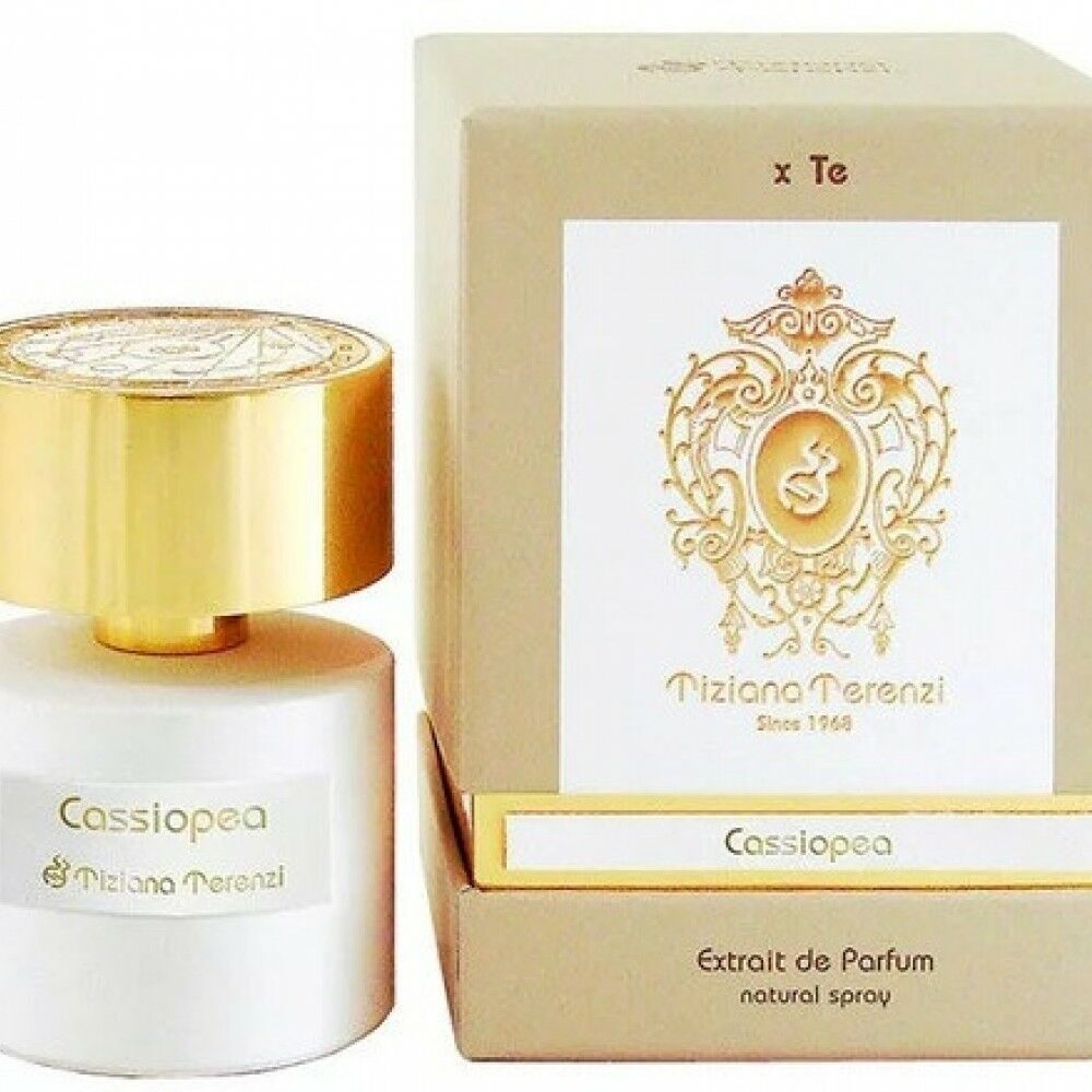 Cassiopea – мягкий, обволакивающий и таинственный по звучанию цветочно-фруктовый унисекс парфюм, выпущенный в 2015 году итальянским нишевым парфюмерным домом Tiziana Terenzi в рамках новой «Лунной коллекции» ароматов.Композиция Тициана Терензи Кассиопея вдохновлена звездным небом и удивительной красотой созвездия Кассиопеи. Еще одним вдохновением для создания аромата послужила древнегреческая легенда о Кассиопее, которая и дала название созвездию.Парфюм начинает звучание с тонкого, чуть терпковатого запаха черной смородины, пряной сладости маракуйи и цитрусовой прохлады лимона. Сердце композиции дарит трогательный аромат ландыша, шелковисто-пряный запах розы и яркую пряность цветущей гвоздики. В то время как база композиции из бархатисто-сливочного сандала, сладковато-дымных бобов тонка и теплого и бархатистого мускуса формирует мягкий ароматический шлейф, элегантно завершающий звучание парфюма.