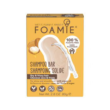 "Волосы вас не слушаются? У Foamie есть то, что вам нужно! Твердый шампунь Foamie Kiss Me Argan интенсивно питает и увлажняет сухие волосы, придает здоровый блеск и разглаживает пряди. Формула шампуня с маслами арганы и манго укрепляет корни волос, препятствует появлению секущихся кончиков, делает волосы послушными и дарит им невероятно нежный и приятный аромат. Средство удобно использовать: просто смочите его водой, чтобы получить воздушную пену! В комплекте с шампунем Foamie Kiss Me Argan — хлопковая лента для удобного хранения. Все продукты Foamie не содержат мыла. Взамен используется синдет — мягкое очищающее средство с нейтральным уровнем pH, которое подходит для всех типов кожи, включая чувствительную. Для максимального эффекта используйте средство в паре с твердым кондиционером Foamie Kiss Me Argan. Foamie — 100% веганский бренд. Его продукция не тестируется на животных, не содержит парабенов, силиконов, сульфатов, а также не влияет на естественный защитный слой кожи.