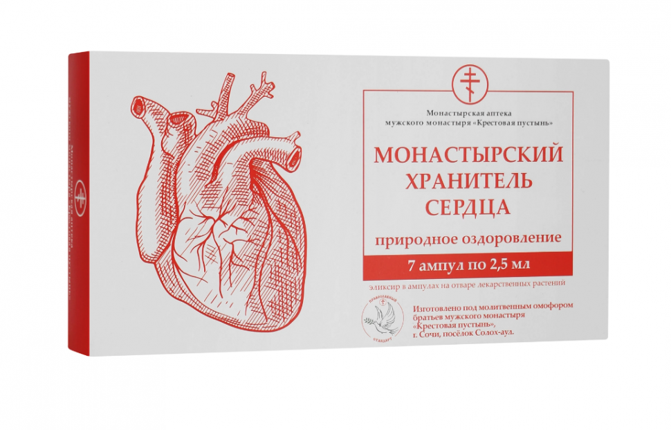 Это концентрация пользы для всей семьи в одной ампуле. Травы, из которых приготовлен монастырский эликсир «Хранитель сердца», благотворно влияют на нервную и сосудистую систему, снижают возбудимость, оказывают успокаивающее действие, повышают качество сна, применяются при различных заболеваниях сердца и сердечно-сосудистой системы. Мелисса, валериана и пустырник – мощные успокаивающие компоненты, способствующие нормализации сна, снятию стресса и перенапряжения. Ягоды боярышника и шиповника обладают способностью питать сердечную мышцу необходимыми веществами, улучшая её работу и предотвращая сердечно-сосудистые спазмы. Народная медицина утверждает, что отвар из этих лекарственных растений помогает наладить процесс кроветворения, используется при анемии и повышенном холестерине. Регулярный приём отвара может помочь восстановить формулу крови и значительно снизить риски развития серьёзных патологических состояний, оказывает положительное влияние на сердце, улучшая работу органа, способствуя профилактике заболеваний эндокарда, миокарда и перикарда, аритмии, гипотонии, стенокардия.