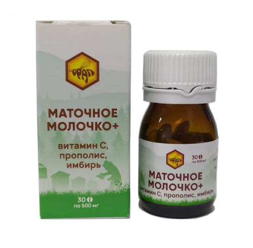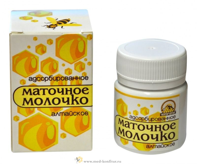 Маточное молочко представляет собой особую, сбалансированную питательную смесь, состоящую из большого числа компонентов, выделяемую пчелами-кормилицами. Благодаря своему составу пчелиное маточное молочко обладает уникальными фармакологическими действиями, представляет собой мощный биологический стимулятор. Основное действие маточного молочка заключается в повышении иммунитета человека. Успешно применяется для профилактики сложнейших заболеваний различной направленности. Благодаря его применению происходит снижение физической усталости и ослабление нервного перенапряжения, восстанавливаются силы, улучшается аппетит, сон, память, повышается трудоспособности. Кроме того, маточное молочко способствует усилению сопротивляемости организма к разного рода инфекциям, повышению общего жизненного тонуса, улучшению самочувствия в целом. - благотворно воздействует на нервную систему и сердечно-сосудистую системы; - понижает уровень холестерина и содержание сахара в рови; - улучшает усвоение мозгом кислорода; - нормализует артериальное давление; - стимулирует систему кровотворения; - улучшает лактацию в послеродовом периоде; - регулирует функцию иммуной и эндокринной системы; - улучшает работу желудочно-кишечного тракта и печени; - стимулирует работу организма при климаксе; - омолаживает организм, повышает потенцию; - эффективно при лечении ослабленного зрения; - уменьшает алкогольную интоксацию; - увеличивает сопротивляемость организма к инфекциям; - выводит радионуклиды. Рекомендации по применению: взрослым по 0,5 г. (1/5 чайной ложки) под язык до полного рассасывания за 20-30 минут до еды 2-3 раза в день, детям - половину дозы взрослого. Последний прием желательно - за 3-4 часа до сна. Минимальный курс 15-20 дней. При необходимости курс повторить через 2-3 месяца. Не рекомендуется при индивидуальной непереносимости компонентов. Состав: лактоза, нативное маточное молочко. Эффект индивидуален.