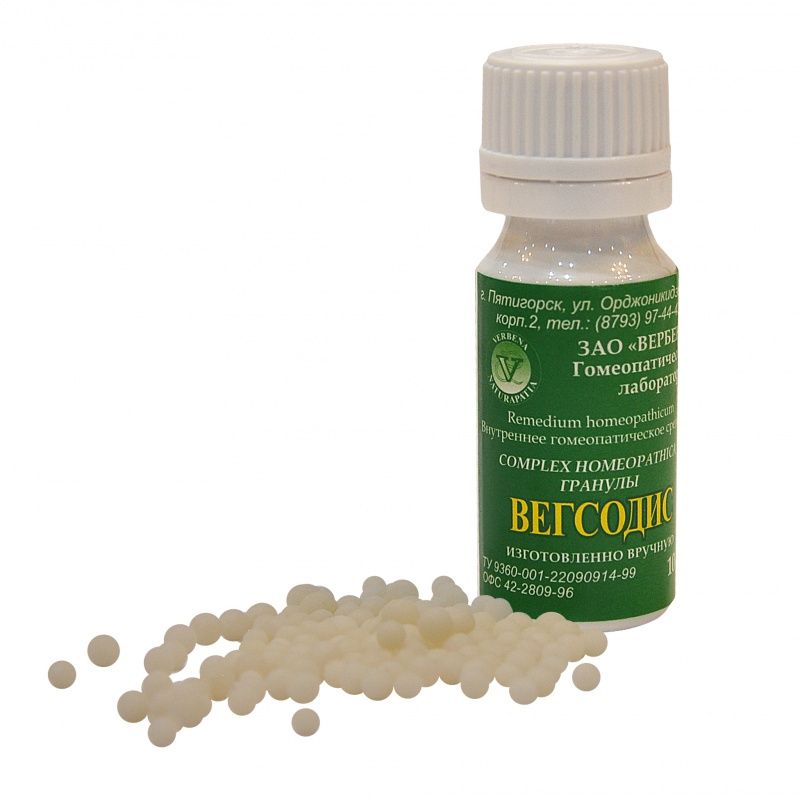 Комплексный гранулированный гомеопатический препарат Вегсодис показан при вегетососудистой дистонии, представляющей собой функциональное расстройство, системное нарушение кровеносной системы. Сопутствующие этому состояния - дисбаланс артериального давления, низкий тонус кровеносных сосудов, недостаточное кровоснабжение органов, падение работоспособности. Все это отражается на психологическом состоянии и может приводить к депрессивным и невротическим нарушениям. Препарат также эффективен при высоком внутричерепном давлении, мягко снимает головные боли. Состав Арника (горный баранник) - рекомендован гомеопатами в случаях хронического переутомления и перегрузок сердечных мышц. Применяется в восстановительной терапии после перенесенных инфарктах и инсультах. Способствует спокойному и быстрому засыпанию.