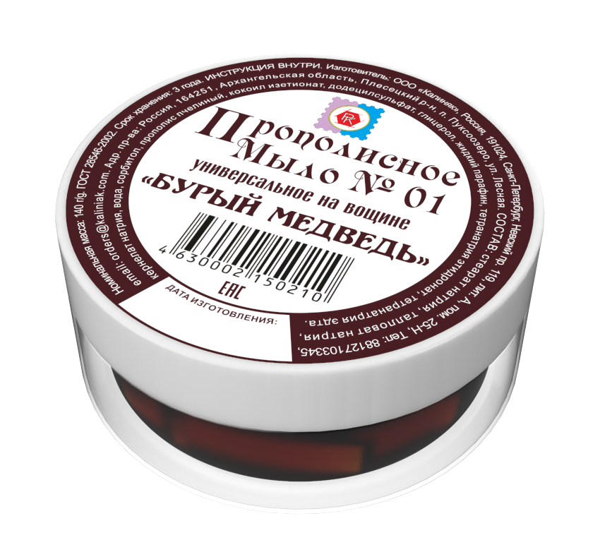 Мыло прополисное Универсальное на вощине № 1 Бурый Медведь 140 гр